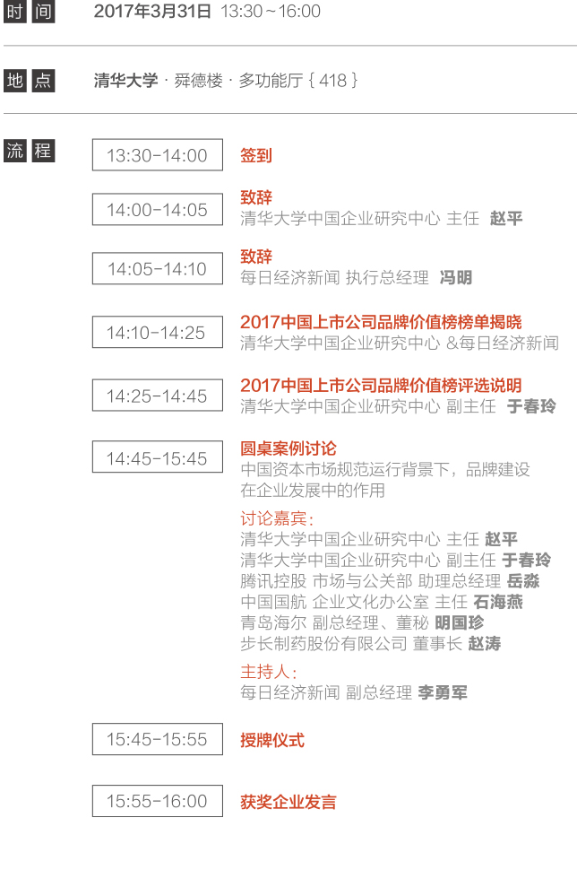 3月31日下午,清華大學(xué)中國企業(yè)研究中心聯(lián)合每日經(jīng)濟(jì)新聞,在清華大學(xué)發(fā)布“中國上市公司品牌價(jià)值榜”。經(jīng)過近1年的研究籌備,這份被稱為“首次定義中國上市公司品牌價(jià)值”的榜單備受業(yè)界和資本市場期待。