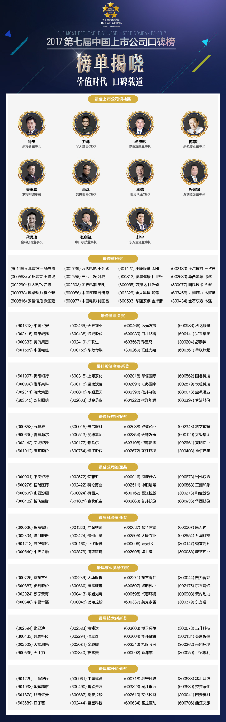 正本清源、守望價值,也一直是《每日經(jīng)濟新聞》連續(xù)七年舉辦中國上市公司口碑榜的初衷。2017年的盛會已經(jīng)正式開啟,在價值時代的感召之下,今年的獎項競選必將更為激烈,就讓我們靜候佳音。
