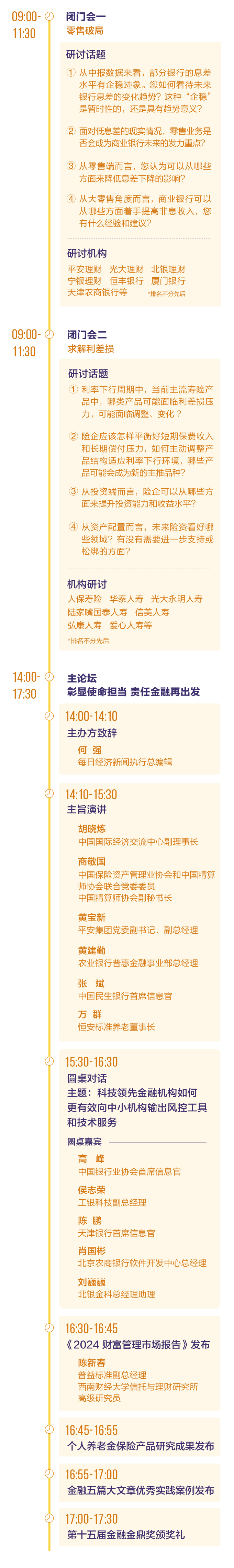 金融發(fā)展年會(huì)作為每日經(jīng)濟(jì)新聞年度重磅行業(yè)活動(dòng)之一已成功舉辦14屆。2024第十五屆金融發(fā)展年會(huì)將于11月19日在北京舉行,以“彰顯使命擔(dān)當(dāng) 責(zé)任金融再出發(fā)”為主題,邀請(qǐng)行業(yè)協(xié)會(huì)、機(jī)構(gòu)代表、專家學(xué)者等重磅嘉賓參與,通過“金融+社會(huì)”的雙重視角,圍繞金融機(jī)構(gòu)踐行“五篇大文章”,深刻探討如何打造產(chǎn)融生態(tài)圈和社會(huì)責(zé)任共同體,實(shí)現(xiàn)可持續(xù)的中國特色金融發(fā)展之路。會(huì)上將同步揭曉第十五屆金融金鼎獎(jiǎng),敬請(qǐng)關(guān)注。