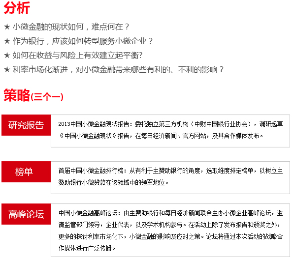 | 報(bào)告發(fā)布 | 李憲鐸(中央財(cái)經(jīng)大學(xué)中國銀行業(yè)研究中心秘書長) | 2013中國小微金融發(fā)展報(bào)告發(fā)布 | |